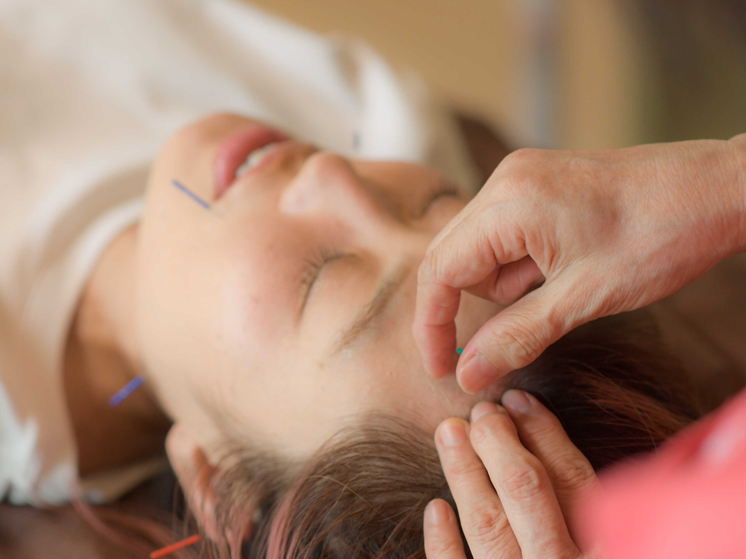 使う鍼は髪の毛よりも細いものになります。血行を促進して肌のターンオーバーを整える。筋肉のコリをゆるめてリフトアップ効果を狙う。顔のむくみやくすみの改善。シワやたるみの予防。小顔効果など期待できます。